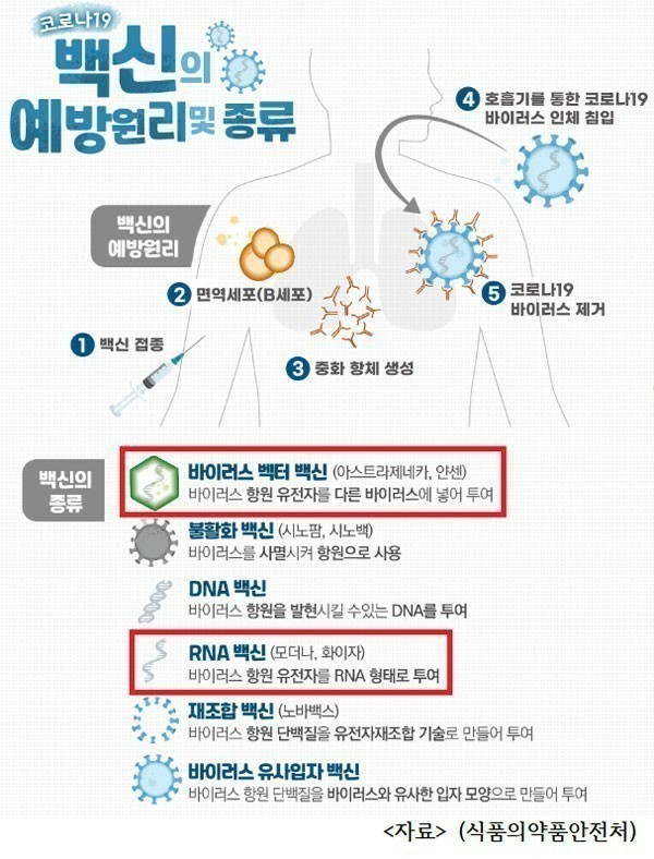 mRNA라는 메신저 RNA 구조인데 바이러스와 싸울 설계도를 몸에 배송해주는 형태 생각하면 됨.