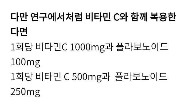 플라보노이드가 우리 몸이나 피부에서 활성을 나타내기 위해서는 항상 적절한 양이 혈액 및 피부에 존재해야 하므로 플라보노이드가 함유된 음식 혹은 화장품 등을 수시로 사용해주는 것이 중요하다. 왜냐하면 플로보노이드가 체내에 머무르는 시간이 길지 않으며, 체내에서 생성되는 과잉의 활성산소 등을 효과적으로 제거하기 위해서는 지속적인 항산화 성분의 공급이 필요하기 때문이다.