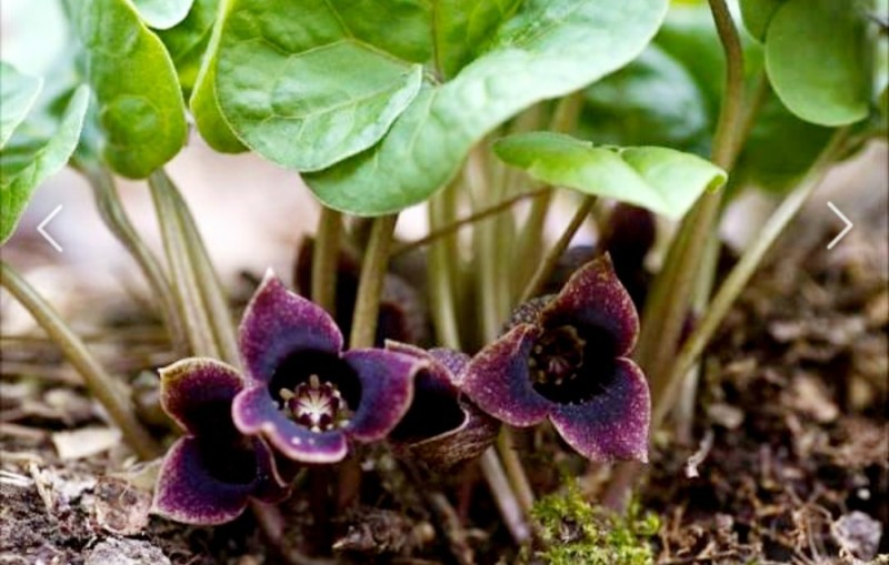 잎의 표면은 녹색이고 뒷면에 잔털이 많으며 이파리는 자줏빛을 띤다. 꽃은 자주색이며 끝이 3갈래로 갈라진 항아리 모양이다. 꽃은 잎 아래쪽의 땅 가까이에서 피기 때문에 위에서는 잘 보이지 않는다.